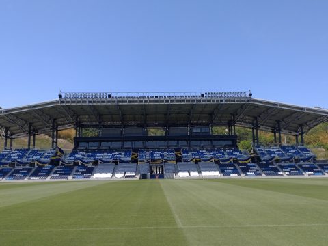 初めに説明しておきますが、本拠地である「今治里山スタジアム(通称:里スタ)」は、現在収容人数5,000人ほどのサッカー専用スタジアムです。昨年まで使っていた「ありがとうサービス.夢スタジアム(通称:夢スタ)」も同じく5,000人ほどの規模でした。同じ大きさのスタジアム?と思わるかもしれませんが、里スタはJ1スタジアム基準を満たす15,000人収容への拡張型スタジアムとなっています。里スタはホーム試合の開催、もともとのスタジアムであった夢スタは練習場になりました。クラブハウスと練習場、ホームスタジアムが隣接しているチームは珍しいようです。